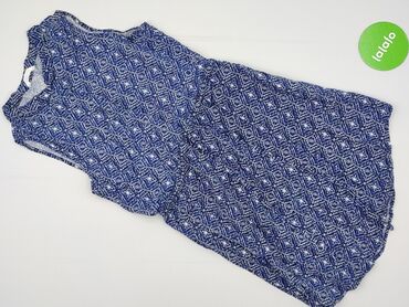 Sukienka damska bez rękawów, rozmiar XL. - Kolor: granatowy z nieregularnym, białym wzorem plamek/pędzla. - Fason: luźny, lekko rozkloszowany dół, okrągły dekolt. - Zapięcie: suwak z tyłu. - Ma...