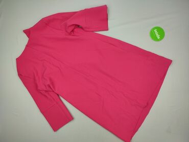 Sukienka damska w intensywnym różowym kolorze. - Fason: prosta, lekko dopasowana, długość przed kolano. - Dekolt: z przodu okrągły, z tyłu głębsze V. - Rękawy: 3/4, w ciemniejszym odcieniu różu; ma...