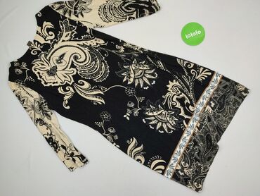 Sukienka damska s.Oliver Denim - Rozmiar: 38 (metka widoczna na zdjęciu) - Kolor bazowy: czarny - Wzór: kwiatowy – róże i orchidee w odcieniach różu, fioletu i zieleni - Krój: taliowana gumką/ścią...