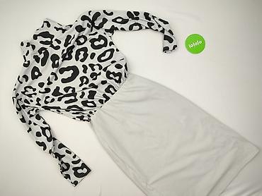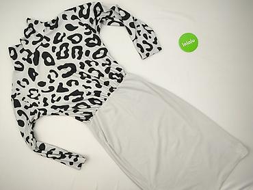 Sukienka damska F&F true, rozmiar 46 - Krój: ołówkowy, z krótkim rękawem i dekoltem w łódkę - Kolor i wzór: melanżowa szarość (delikatna struktura), wewnątrz podszewka w zwierzęcy/leopardzi motyw ...