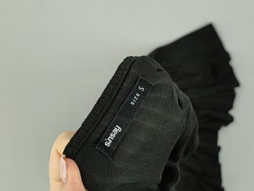 Sukienka Sinsay, rozmiar S - Kolor: czarny - Fason: rozkloszowana, z wszytymi poziomymi cięciami i marszczeniami tworzącymi falbany - Rękawy: długie, lekko bufiaste, zakończone gumką - Dekolt: okr...