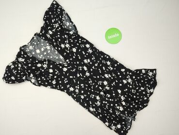 Sukienka damska Sinsay - Rozmiar: XS (metka na zdjęciu) - Kolor: czarny w biały, drobny kwiatowy wzór - Fason: kopertowy dekolt V, krótkie bufiaste rękawy, odcięcie i lekkie marszczenia w talii, r...
