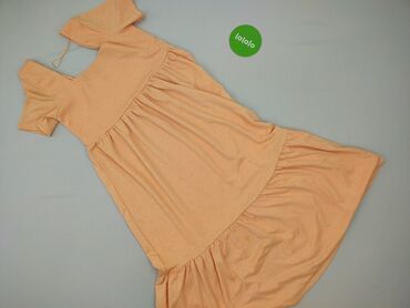 Sukienka damska Sinsay - Rozmiar: XS (z metki) - Kolor: brzoskwiniowy/pastelowy pomarańcz - Fason: rozkloszowana, z odcięciem w talii i doszywanymi, marszczonymi falbanami na dole - Dekolt: kwadra...