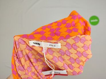 Sukienka Sinsay, rozmiar XL - Fason: dopasowana, dzianinowa midi - Dekolt: szeroki, głęboki, zaokrąglony - Rękaw: krótki - Kolor/wzór: melanż pomarańczowo‑różowo‑fioletowy, prążkowana faktura mate...