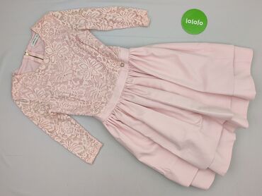 Sukienka s.Moriss, rozmiar XS - Model: rozkloszowana z dopasowaną koronkową górą - Góra: pudrowy róż, bogata koronka kwiatowa na podszewce, krótkie rękawki, delikatny dekolt - Dół: kremowa, szerok...Stan: