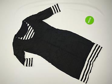 Sukienka SOLAR, rozmiar 36 - Model: dzianinowa góra w biało‑czarne paski, dół z czarnej tkaniny o marszczonym/bombkowym kroju - Rękawy: 3/4 z falbanką przy mankiecie - Dekolt: łódka - Fason: prost...