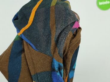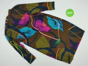 - Wzór: artystyczny, wielobarwny print na tle w odcieniach brązu, zieleni, granatu, turkusu, fuksji i pomarańczu