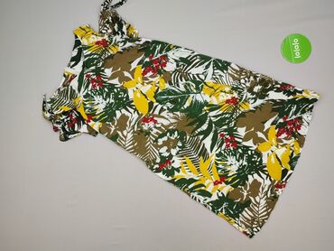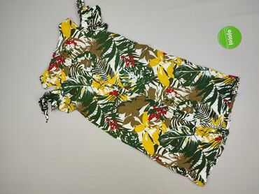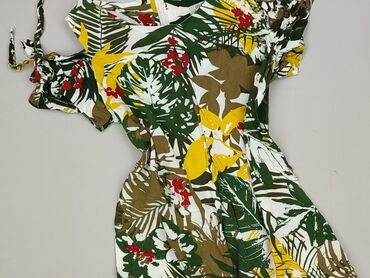 Sukienka damska w kwiaty, rozmiar EUR 36 - Krój: dopasowana góra, rozkloszowany dół, długość do kolan - Rękaw: krótki - Dekolt: okrągły - Zapięcie: z tyłu (widoczne rozcięcie z guzikiem) - Wzór: g...