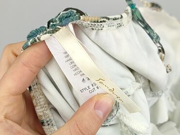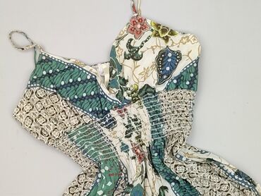 Sukienka BLACK FISH L/XL – biała w kwiatowy wzór - Fason: midi do kolan, bez rękawów, luźna, z marszczeniem przy dekolcie (delikatne gumkowanie z przodu) - Wzór: efektowny, roślinno‑kwiatowy print...