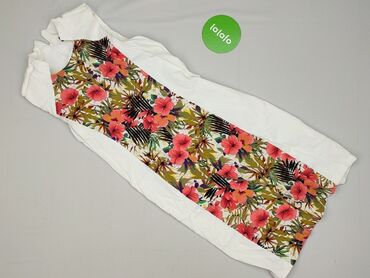 Sukienka damska z krótkim rękawem – wzór tropikalny - Fason: prosta, lekko dopasowana, długość midi/przed kolano - Dekolt: okrągły - Zapięcie: zamek błyskawiczny z tyłu - Rękawy: krótkie z ozdobny...