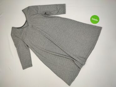 Szara dzianinowa sukienka z rękawem 3/4 - Krój: prosty, lekko dopasowany, długość przed kolano - Dekolt: okrągły - Rękawy: 3/4 - Kolor i wzór: melanż szarości - Materiał: miękka, średniej grubości...