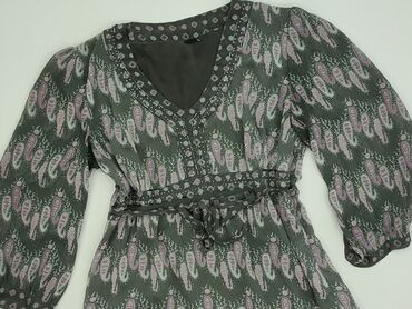 Sukienka damska FREE MOOD, Made in Italy. - Fason: kopertowy dekolt w kształcie V, długi rękaw, lekko rozkloszowany dół. - Talia: marszczona/gumka podkreślająca sylwetkę, z wiązaniem. - Wzór: kwia...