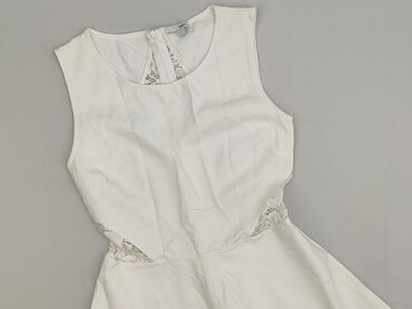 Sukienka damska marki Tally Weijl, o kroju bez rękawów, z okrągłym dekoltem. Górna część sukienki jest biała, z delikatnymi plisami i trzema ozdobnymi guzikami na przodzie. Dolna część w kolorze be...