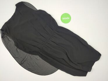 Czarna sukienka damska z lekkiego, zwiewnego materiału. - Fason: bez rękawów, góra z łagodnym dekoltem; w talii wszyta gumka podkreślająca sylwetkę. - Dół: warstwowy, asymetryczny z dłuższymi, s...Stan:
