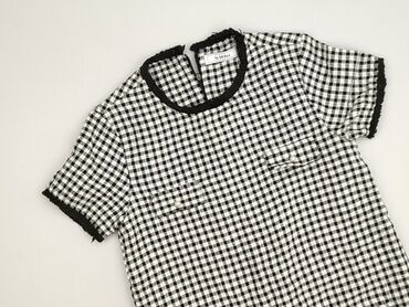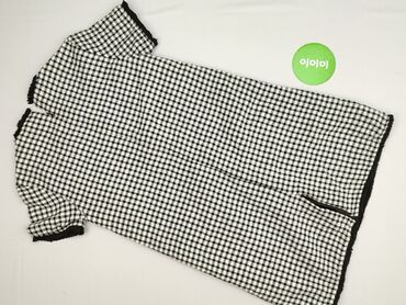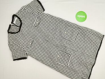 Sukienka damska w kratkę, rozmiar M - Krój: prosta, lekko dopasowana, z krótkim rękawem i okrągłym dekoltem - Wzór: drobna czarno-biała kratka (gingham) - Długość: przed kolano (tuba) - Detale: dw...