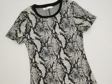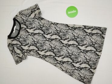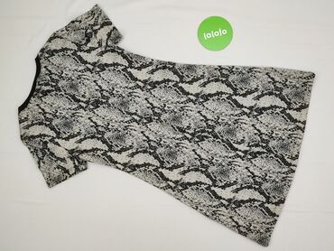 Sukienka damska Sinsay - Rozmiar: XS (zgodnie z metką) - Fason: prosta, dopasowana, krótki rękaw, okrągły dekolt z czarną lamówką - Wzór: panterka/leopard na białym tle - Materiał: 95% poliester (...