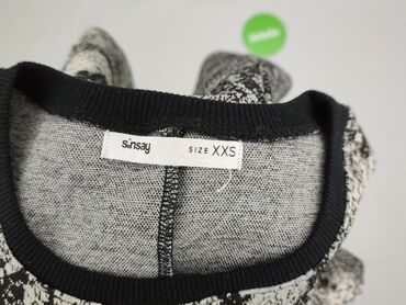 Sukienka damska Sinsay - Rozmiar: XS - Fason: góra dopasowana, dół lekko rozszerzany (A-line) - Rękaw: krótki - Dekolt: okrągły, czarna lamówka - Kolorystyka: czarno‑biała góra z geometrycznym wzo...