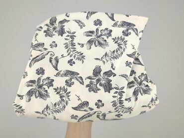 - Wzór: biały materiał w grafitowy, roślinny print (kwiaty i liście)