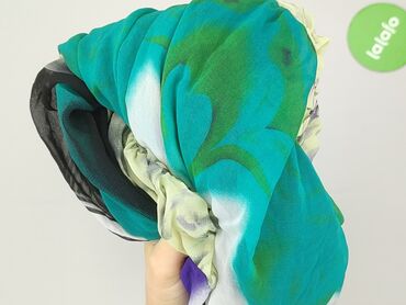 - Wzór i kolory: abstrakcyjny print w odcieniach turkusu, fioletu, czerni, bieli, żółci i seledynu