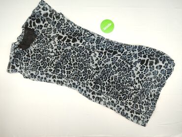 Sukienka damska bez rękawów w panterkę - Krój: tubowa/sukienka ołówkowa, długość przed kolano - Dekolt: prostokątny z czarną wstawką na piersi - Tył: gładki, czarny - Wzór: efektowny nadruk w pant...