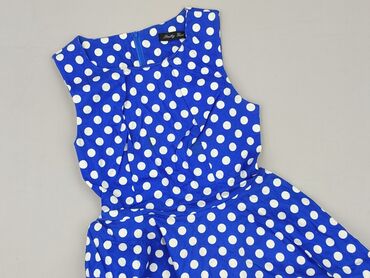 Sukienka Pretty Girl – rozmiar 36 - Kolor: granatowy - Wzór: drobne białe serduszka/krople na całej powierzchni - Fason: odcięta w talii, dół z marszczeniami, tworzący delikatnie rozkloszowaną spó...