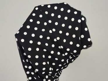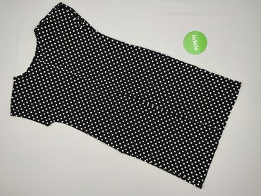 Sukienka damska w kropki - Krój: prosta, t-shirtowa, z krótkim rękawem - Długość: do kolan (midi) - Kolor: czarny w drobne białe groszki - Dekolt: okrągły - Materiał: miękka, elastyczna dzianina b...Stan: