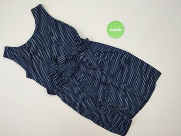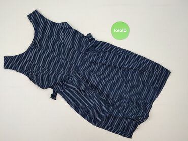 Sukienka damska XL, granatowa w grochy - Fason: góra dopasowana bez rękawów, odcięcie w talii z efektowną baskinką; dół z lekkiego, zwiewnego materiału w białe grochy, warstwowy/rozkloszowany. - D...