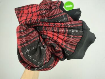 - Wzór: szkocka krata w odcieniach czerwieni i czerni z delikatnymi jasnymi przeszyciami