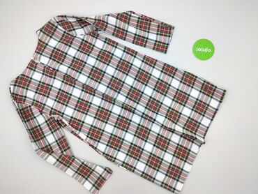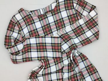 Sukienka damska w kratę - Krój: luźny, rozszerzany do dołu, z zaszewkami modelującymi przód - Rękaw: 3/4 - Dekolt: okrągły - Wzór: szkocka krata – czarno-biała z czerwonymi liniami - Długość: za ko...
