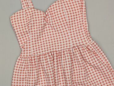 Sukienka w różowo-białą kratkę gingham - Fason: mini, lekko rozkloszowany dół - Dekolt: kopertowy w kształcie serca - Ramiączka: wiązane przy szyi (halterneck) z ozdobną falbaną biegnącą przez dek...