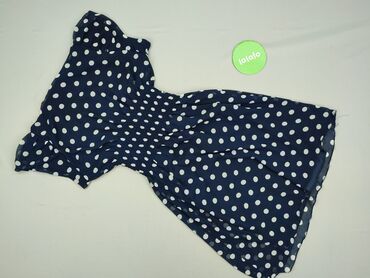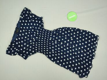 Sukienka damska w grochy - Kolor: granatowy z drobnymi białymi kropkami - Fason: prosta, lekko dopasowana, długość przed kolano - Rękawy: krótkie, lekko transparentne, marszczone - Dekolt: okrągły...