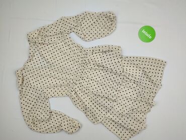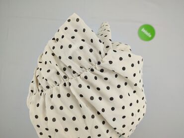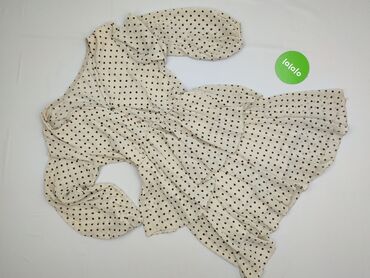 Sukienka damska w groszki - Kolor: czarny z białymi kropkami - Fason: zwiewny, lekko rozkloszowany dół, falbana biegnąca przez przód i ramiona - Rękawy: długie, lekko bufiaste, zakończone wszytą g...