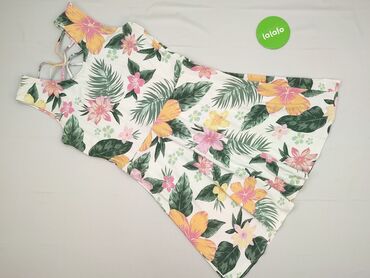 Sukienka letnia na ramiączkach – wzór w tropikalne kwiaty - Krój: lekko rozszerzana, zwiewna, z odcięciem w pasie - Ramiączka cienkie, plecione - Dekolt prosty - Materiał: cienka, przewiewna tkani...Stan: