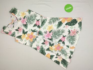 Letnia sukienka mini w kwiaty - Krój: bez rękawów, dopasowana góra, rozkloszowany dół - Dekolt: z ozdobnym wycięciem z tyłu - Ramiączka: cienkie, regulowane, z metalowymi złotymi łańcuszkami - Wzó...