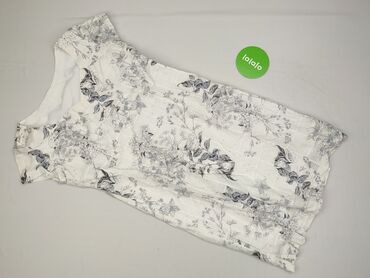 Biała sukienka damska z okrągłym dekoltem, bez rękawów. Sukienka charakteryzuje się wzorem z szarych, czarnych i żółtych kwiatów, które układają się na dole sukienki. Gładka, biała góra, odcięcie w...