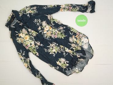 Sukienka damska w kolorze granatowym z białym wzorem kwiatowym. Posiada okrągły dekolt i rękawy o długości do łokcia. W talii znajduje się elastyczna gumka, która delikatnie marszczy materiał, podk...