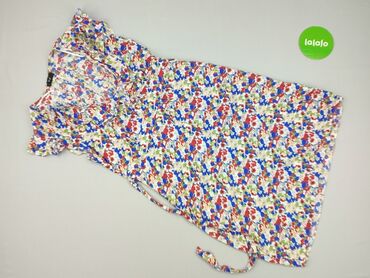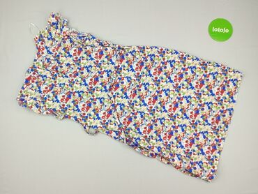 Sukienka damska F&F - Rozmiar: EU 42 (UK 14); obwód biustu wg metki ok. 98 cm, talii ok. 80 cm - Fason: lekko rozszerzana ku dołowi, bez rękawów, zabudowany dekolt - Zapięcie: suwak z tyłu - Mater...Krótka sukienka damska marki F&F w wielokolorowy wzór kwiatowy, idealna na letnie dni. Sukienka charakteryzuje się luźnym fasonem z krótkimi rękawami i dekoltem w kształcie litery V. Wykonana w 100% z wiskozy, co zapewnia lekkość i przewiewność. Wiązanie w pasie pozwala na dopasowanie fasonu do sylwetki, a falbanki dodają jej uroku. Doskonała propozycja na codzienne wyjścia, spotkania ze znajomymi czy letnie przyjęcia.