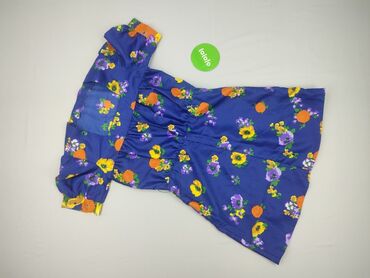 Sukienka damska w kwiaty, mini - Fason: prosta mini z delikatnie rozszerzanym dołem - Rękawy: długie, zakończone marszczeniem przy mankietach - Dekolt/stójka: niewysoka stójka z guzikiem z tyłu; n...Stan: