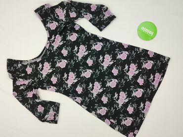Sukienka damska w kwiaty - Kolor bazowy: czarny - Wzór: delikatne kwiaty w odcieniach pudrowego różu, beżu i bieli z gałązkami - Krój: prosty, luźny, długość przed kolano - Rękaw: krótki - Dekolt:...