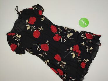 Sukienka COPYR1GHT (rozmiar S/M) – czarna w kwiaty - Fason: lekko rozkloszowana, długość przed kolano - Dekolt: okrągły - Rękaw: krótki, z falbanką przy ramionach - Talia: delikatnie marszczona, p...