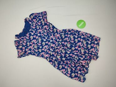 Sukienka damska w kwiaty – granatowa baza z kontrastowym, wielobarwnym nadrukiem roślinnym. - Krój: lekko rozkloszowana, z panelem/karczkiem i marszczeniami podkreślającymi talię; dół z doszywanym...Stan: