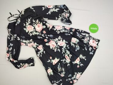 Sukienka damska w kwiaty - Krój: mini, lekko rozkloszowany dół - Rękaw: długi, delikatnie rozszerzany - Dekolt: okrągły z wiązaniem z tyłu - Talia: podkreślona marszczeniem/ściągaczem - Materiał: ...