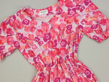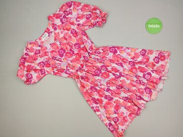 Sukienka damska „Made in Italy” w kwiaty - Typ: sukienka midi/za kolano, zwiewna - Fason: luźny, rozkloszowany z marszczeniami; rękawy 3/4 zakończone gumką - Dekolt: okrągły z rozcięciem i guzikie...