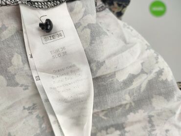 Sukienka damska w kwiaty, rozmiar S. - Fason: dopasowana góra, rozkloszowany dół, krótkie rękawy - Wzór: duże kwiaty w odcieniach łososiowego, zieleni i niebieskich akcentów - Dekolt: okrągły - Za...