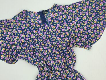 Sukienka damska z kontrastową górą w kwiaty i granatowym dołem. - Fason: góra dopasowana bez rękawów, dół rozkloszowany z zakładkami, długość mini/przed kolano - Wzór i kolor: góra w intensywny, w...
