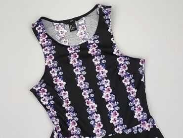 Sukienka damska, rozmiar M. Góra w kolorze czarnym, z dekoltem kwadratowym i krótkim rękawem; dół w drobny, kwiatowy wzór na czarnym tle. Fason odcinany w talii, rozkloszowany dół zapewnia swobodę ...