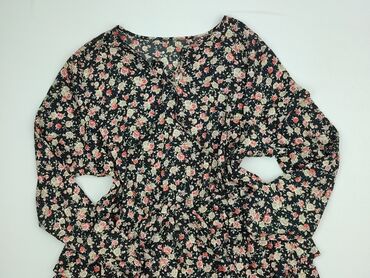 Sukienka damska w kwiaty - Kolor: czarny z drobnym, różowo‑zielonym wzorem róż - Fason: rozkloszowana, odcięcie w talii, długość mini - Rękawy: długie, zakończone elastycznym marszczeniem - Dekolt...