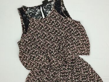 Sukienka damska VILA, rozmiar S. - Fason: bez rękawów, z dekoltem w kształcie litery V, lekko odcinana w talii; dół rozszerzany. - Wzór: kwiatowy na brzoskwiniowo-różowym tle (odcienie granatu, bi...