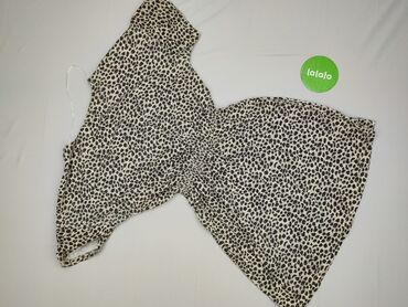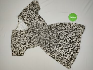 Sukienka damska w panterkę - Wzór: panterka w odcieniach czerni i brązu na jasnym tle - Krój: luźny, z odcinaną talią i delikatnie marszczonym dołem - Dekolt: w serek - Rękaw: krótki, lekko opadaj...