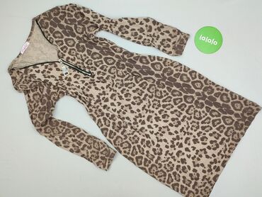 Sukienka damska, rozmiar XL, 100% poliester. - Wzór: panterka w odcieniach beżu, brązu i czerni. - Krój: luźny, długość midi za kolano (na zdjęciach widać dłuższy fason). - Rękawy: długie, lekko ...